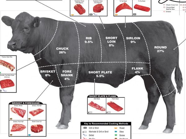 A 1000-pound cow will calculate to a 620-pound carcass (62%) and 328 pounds of beef (53% of carcass weight). Our beef options above are based on heifers and steers that are approximately 20 -24 months of age at an average of 1000 pounds live weight. Ground beef only orders will come from a mid-age cow at an average of 1200 + pounds live weight.